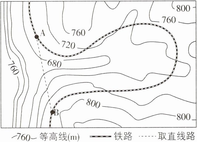 [2022湖北咸宁中考]山区地段的普通铁路常采用下图所示的“灯泡”形迂回线路,随着科技发展和提速的需要,有些“灯泡”形线路被隧道和桥梁代替,实现了“裁弯取直”。据此完成6~7题。