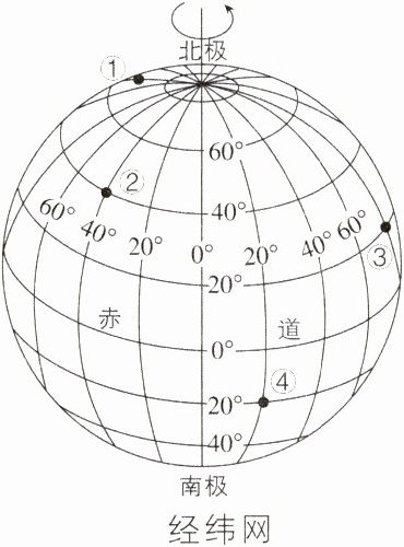 1. D 【解析】根据图中地球仪的经纬度分布来看,③地经度为80°E,④地经度为20°E,两地经度相差60°。经度相差15°,地方时相差1小时,故③④两地相差4小时。春分日,当③地迎来日出时,③地方时为6时,④地位于③地西侧,故④地地方时较晚,即④地地方时为2时,所以④地为夜晚。故选D。