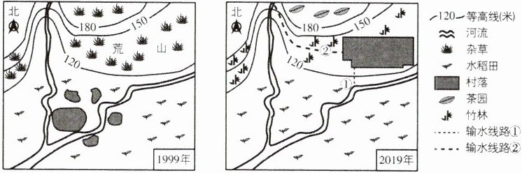 (4)输水线路①合理,该线路较短,投资较少。或输水线路②合理,该线路可以顺地势自流,减少输水成本。
