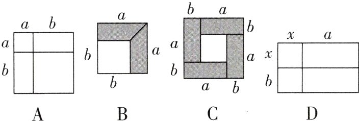 B【解析】因为$(a + b)^2=a^2 + 2ab + b^2$,所以选项A不符合题意;因为$2\times\frac{1}{2}(a + b)(a - b)=a^2 - b^2$,所以选项B符合题意;因为$(a + b)^2-(a - b)^2=4ab$,所以选项C不符合题意;因为$(a + x)(b + x)=ab + ax + bx + x^2$,所以选项D不符合题意. 故选B.