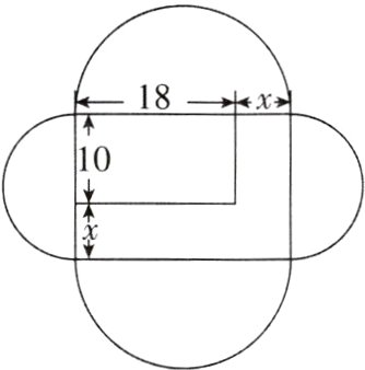 3[2024江苏镇江期中,较难]如图,若一个长方形广场的长为18米,宽为10米,现因施工改造,将广场的长和宽各增加$x$米,广场面积增加了20平方米,同时沿长方形广场的四边分别向外修建半圆形花圃.请你计算出花圃的总面积为( )