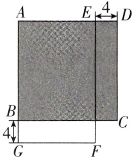 9[2024江苏苏州期中]某小区内有一块正方形草坪 $ABCD$,如图所示,小区物业现对该草坪进行改造,将该正方形草坪的 $AB$ 边增加4米,$AD$ 边减少4米,则改造后的长方形草坪 $AEFG$ 的面积与原来正方形草坪 $ABCD$ 的面积相比( )