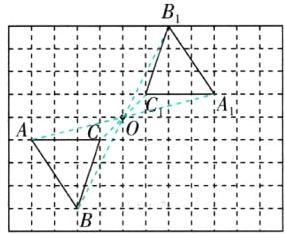 4[2024江苏镇江润州区期末]如图,在由边长为1个单位长度的小正方形组成的网格中,△ABC 的顶点均为格点(网格线的交点).以点O为旋转中心,将△ABC顺时针旋转180°,得到△A₁B₁C₁,请画出△A₁B₁C₁.