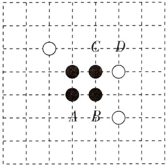 2[2024甘肃武威中考]围棋起源于中国,古代称为“弈”.如图是两位同学的部分对弈图,轮到白方落子,观察棋盘,白方如果落子于点________的位置,则所得的对弈图是轴对称图形.(填写A,B,C,D中的一处即可,A,B,C,D 位于棋盘的格点上)