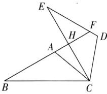 因为将△ABC 绕点 C 顺时针旋转 60°得到△DEC,所以∠BCE = ∠ACD = 60°. 因为∠B = 30°,所以在△BHC 中,∠BHC = 180° - ∠BCE - ∠B = 90°,所以 BF⊥CE,故 D 选项正确,符合题意. 设∠ACH = x°,所以∠ACB = 60° - x°. 因为∠B = 30°,所以∠EDC = ∠BAC = 180° - 30° - (60° - x°) = 90° + x°,所以∠EDC + ∠ACD = 90° + x° + 60° = 150° + x°. 因为 x°不一定等于 30°,所以∠EDC + ∠ACD 不一定等于 180°,所以 AC//DE 不一定成立,故 B 选项不正确,不符合题意. 因为∠ACB = 60° - x°,∠ACD = 60°,x°不一定等于 0°,所以∠ACB = ∠ACD 不一定成立,故 A 选项不正确,不符合题意. 因为将△ABC 绕点 C 顺时针旋转 60°得到△DEC,所以 AB = ED = EF + FD,所以 BA≥EF,故 C 选项不正确,不符合题意. 故选 D.