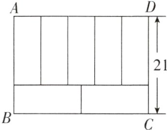 5[2024江苏扬州调研]如图,七个相同的小长方形组成一个大长方形ABCD,若CD = 21,则长方形ABCD的长为 ( )