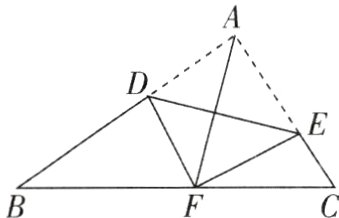 4[2024重庆北碚区期末,中]如图所示,D,E分别为三角形ABC的边AB,AC上两点,将三角形ABC沿DE折叠,点A落在BC边上的点F处,连接AF,∠BDF = ∠FEC - 20°,9∠BDF = 8 ∠BAC,求∠BAC的度数.