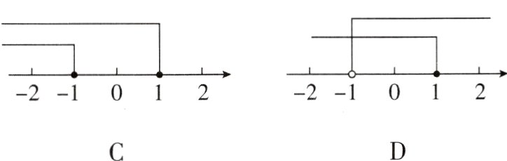 3把不等式组$\begin{cases}x + 1 > 0,\\x + 3 \leq 4\end{cases}$的解集表示在数轴上,下列选项正确的是 ( )