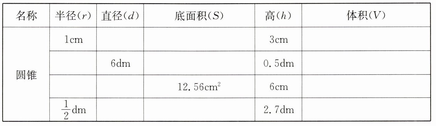 (2)$V_{圆锥}=\frac{1}{3}\pi(\frac{d}{2})^{2}h$