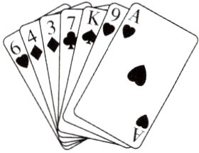 3[2023河北中考]有7张扑克牌如图所示,将其打乱顺序后,背面朝上放在桌面上,若从中随机抽取一张,则抽到的花色可能性最大的是 ( )