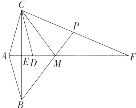 ∴设∠MPC = α,则∠BAE = ∠CAE = ∠CDE = α. 设∠BMA = β,则∠PMF = ∠CMA = β,
