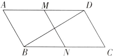 (2)【解】如图,连接$ND$.$\because$四边形$MNCD$是平行四边形,$\therefore DC = MN = 1$.$\because N$是$BC$的中点,$\therefore BN = CN=\frac{1}{2}BC$.$\because BC = 2CD$,$\therefore CD = CN$. 又$\because \angle C = 60^{\circ}$,$\therefore \triangle NCD$是等边三角形,$\therefore ND = NC = DC = 1$,$\angle CDN=\angle DNC = 60^{\circ}$.$\because \angle DNC$是$\triangle BND$的外角,$\therefore \angle NBD+\angle NDB=\angle DNC$.$\because DN = CN = BN$,$\therefore \angle DBN=\angle BDN=\frac{1}{2}\angle DNC = 30^{\circ}$,$\therefore \angle BDC=\angle CDN+\angle BDN = 90^{\circ}$.$\because BC = 2DC = 2$,$\therefore BD=\sqrt{BC^{2}-DC^{2}}=\sqrt{2^{2}-1^{2}}=\sqrt{3}$.
