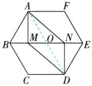 ①②④ [解析]如图,连接AD,交BE于点O. 在正六边形ABCDEF中,∠OAF = ∠ODC,∠ABM = ∠DEN,AB = DE,OA = OD,OB = OE. ①