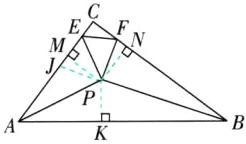 4【解析】如图,过点P作PM⊥AC于M,PN⊥BC于N,PK⊥AB于K,则∠C = ∠PMC = ∠PNC = 90°.在EA上取一点J,使得MJ = FN,连接PJ.