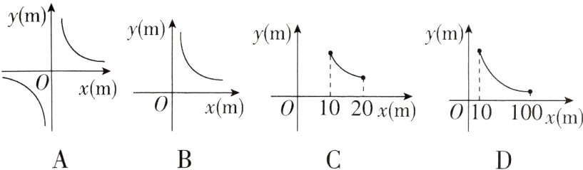 5 某学校要种植一块面积为200 m²的长方形草坪,要求两边长均不小于10 m,则草坪的一边长y(单位:m)随另一边长x(单位:m)的变化而变化的图像可能是( )