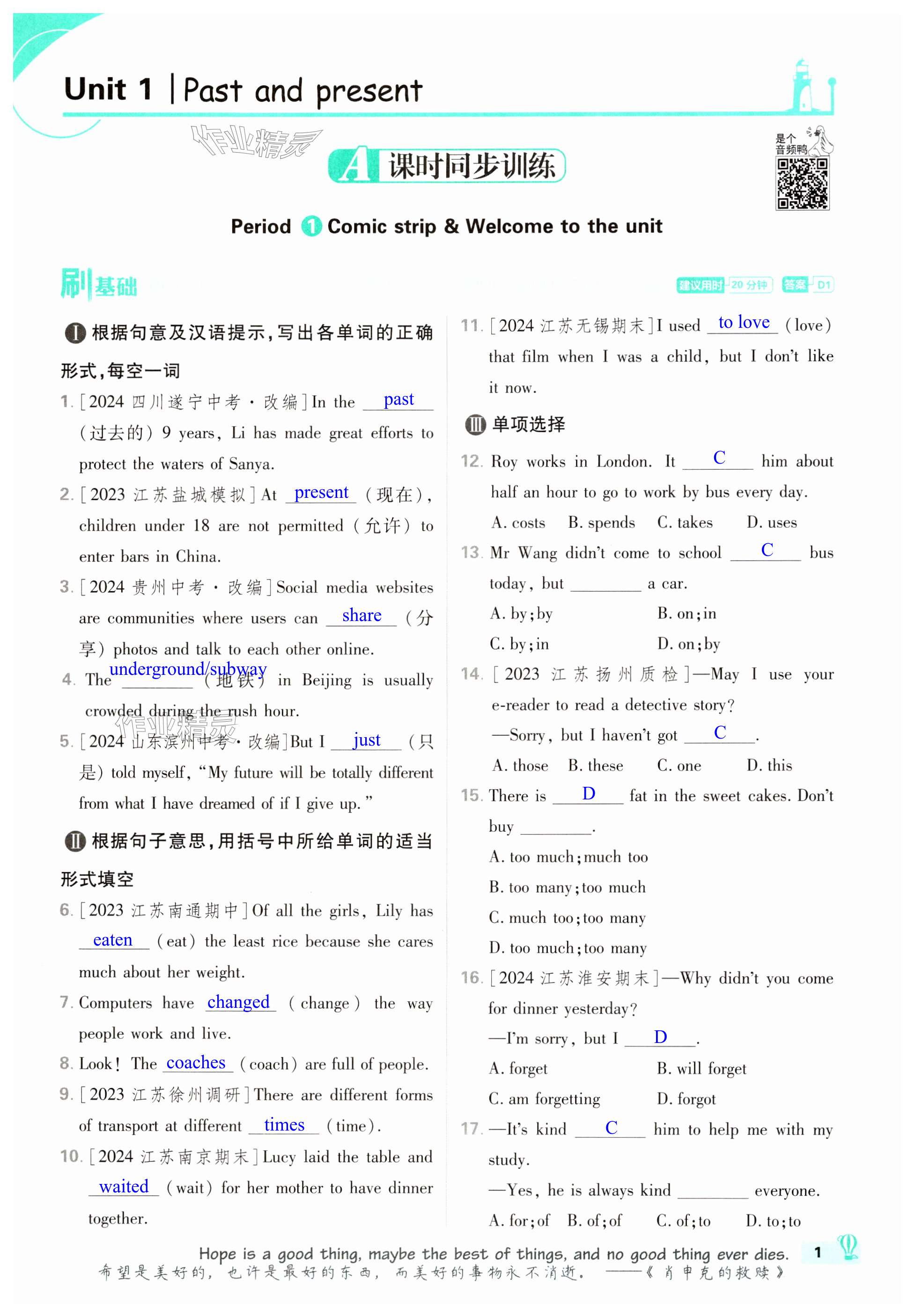 注:目前有些书本章节名称可能整理的还不是很完善,但都是按照顺序排列的,请同学们按照顺序仔细查找。练习册2025年初中必刷题八年级英语下册译林版答案主要是用来给同学们做完题方便对答案用的,请勿直接抄袭。