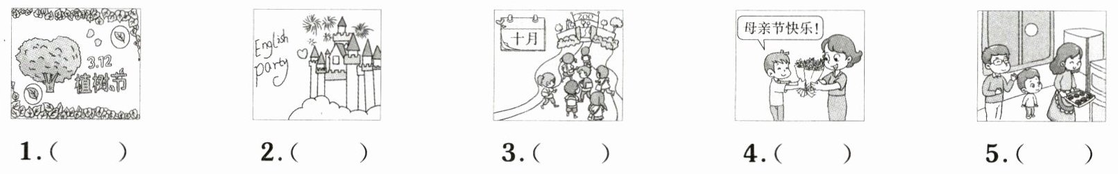 ( )3. A. I will make a card. B. He will sing to her. C. She will cook meals.