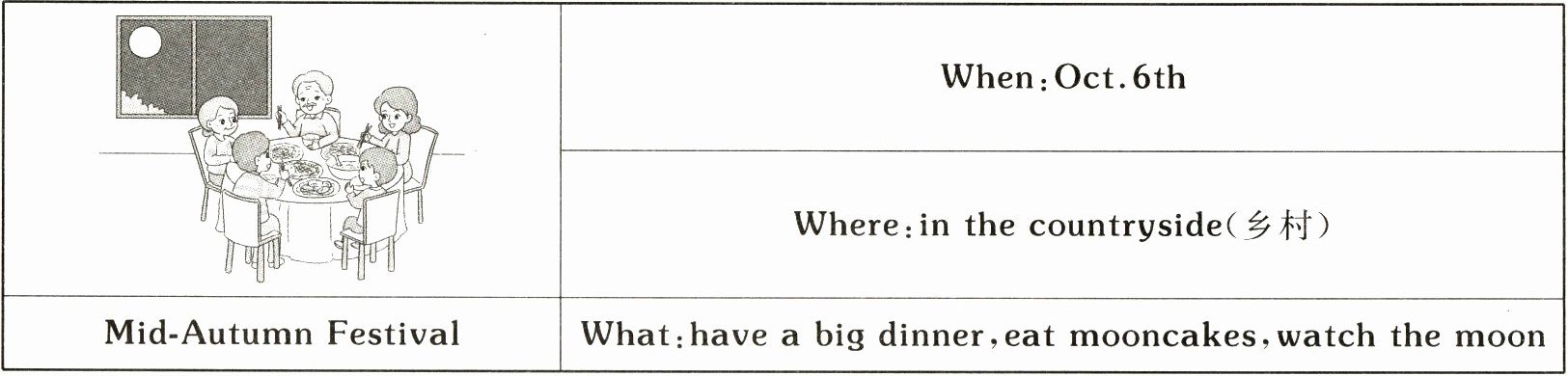 Mid - Autumn Festival@@October 6th@@countryside@@a big dinner@@eat mooncakes