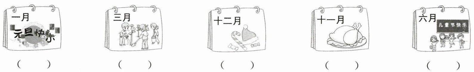 二、听音,给你听到的节日所在的月份标号。(5 分)
