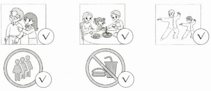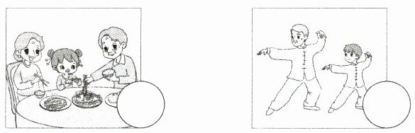 四、听短文,在与你所听内容相符的图片旁的圆圈内画“√”。(10分)