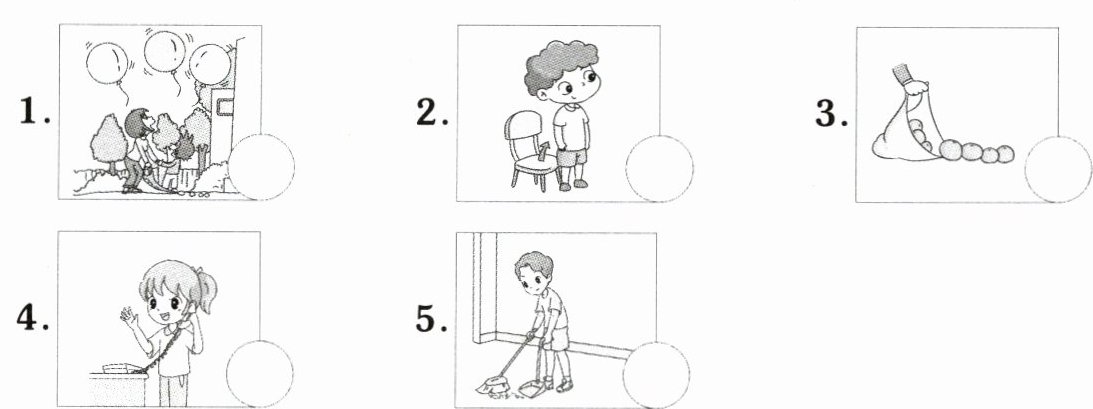 二、听音,选出与所听内容相符的图片,将序号写在横线上。(5分)