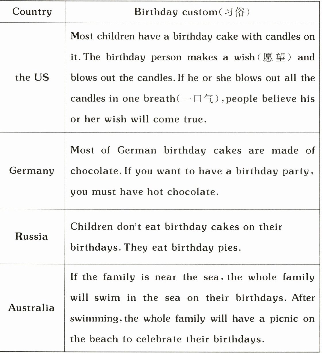 ( )7. In the UK, people believe their wishes will come true if they blow out all the candles in one breath.
