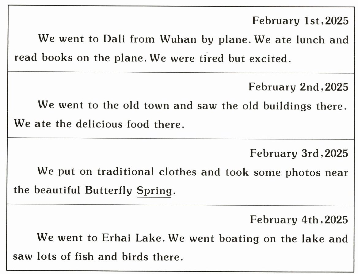 Lily写了几篇旅行日记,请阅读后按要求完成题目。(10分)