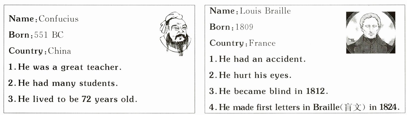 Louis Braille was born in 1809. He was born in France. When he was young, he had an accident and hurt his eyes. He became blind when he was three. In 1824, he made first letters in Braille. He helped blind people learn to read.