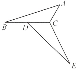 5(2024南京期末)如图,将△ABC按逆时针方向旋转一定角度后得到△DEC,D为BC的中点.