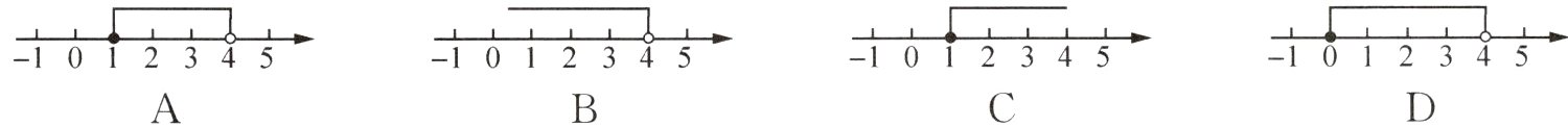 A. -1 0 1 2 3 4 5,数轴上1处为实心点,4处为空心点,两点间线段涂黑