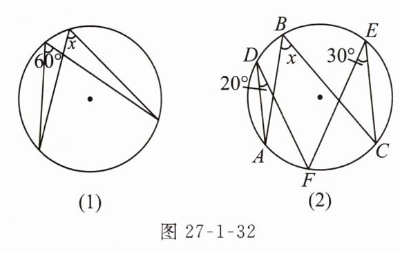 例3 (教材典题)试分别求出图27 - 1 - 32中∠x的大小.