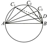 证明:如图,假设AB不是圆的直径,不妨设AD是圆的一条直径,连结C₁D. 则∠AC₁D=90°.