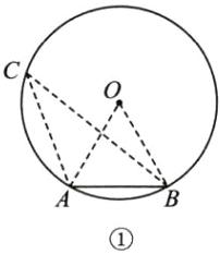 连结OA,OB,在弦AB所对的优弧上任取一点C,连结CA,CB.