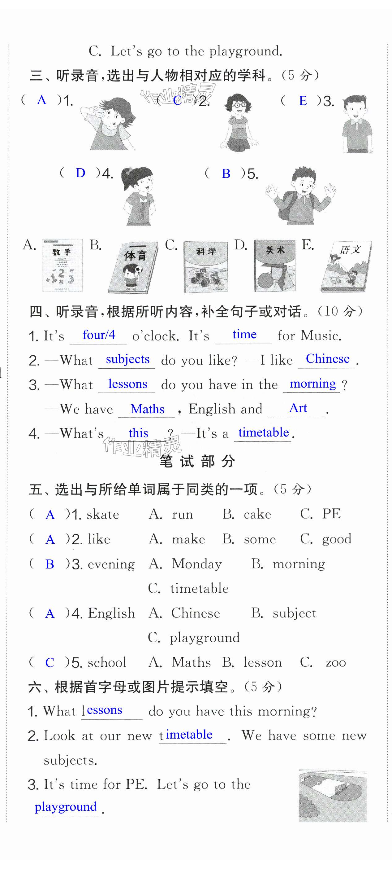 注:目前有些书本章节名称可能整理的还不是很完善,但都是按照顺序排列的,请同学们按照顺序仔细查找。练习册 2025年实验班提优大考卷四年级英语下册译林版 答案主要是用来给同学们做完题方便对答案用的,请勿直接抄袭。