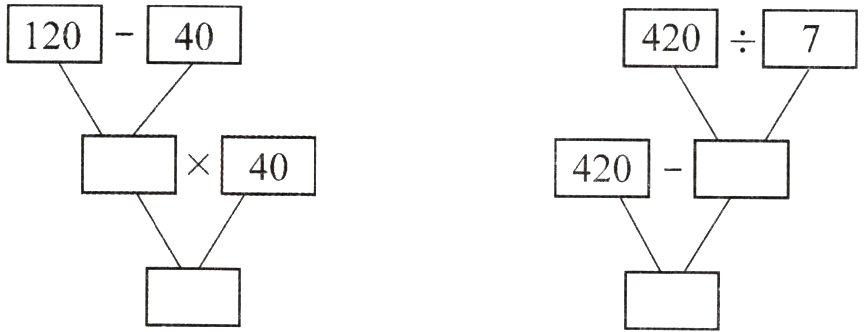 80 3200 (120 - 40)×40 = 3200 60 360 420 - 420÷7 = 360