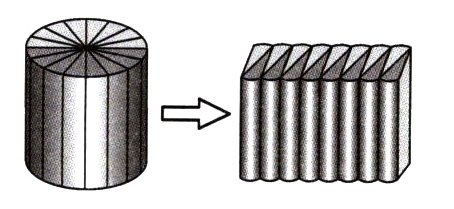 1. (基础题)把一个底面半径是6厘米的圆柱切拼成一个近似的长方体后(如图),表面积增加了180平方厘米。原来圆柱的体积是多少立方厘米?