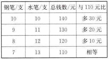 钢笔:(110 - 40)÷(12 - 2) = 7(支)