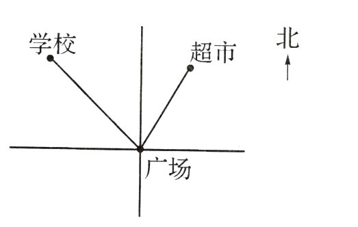 1. (基础题)学校在广场北偏西45°方向2千米处,超市在广场( )偏( )( )°方向( )米处。