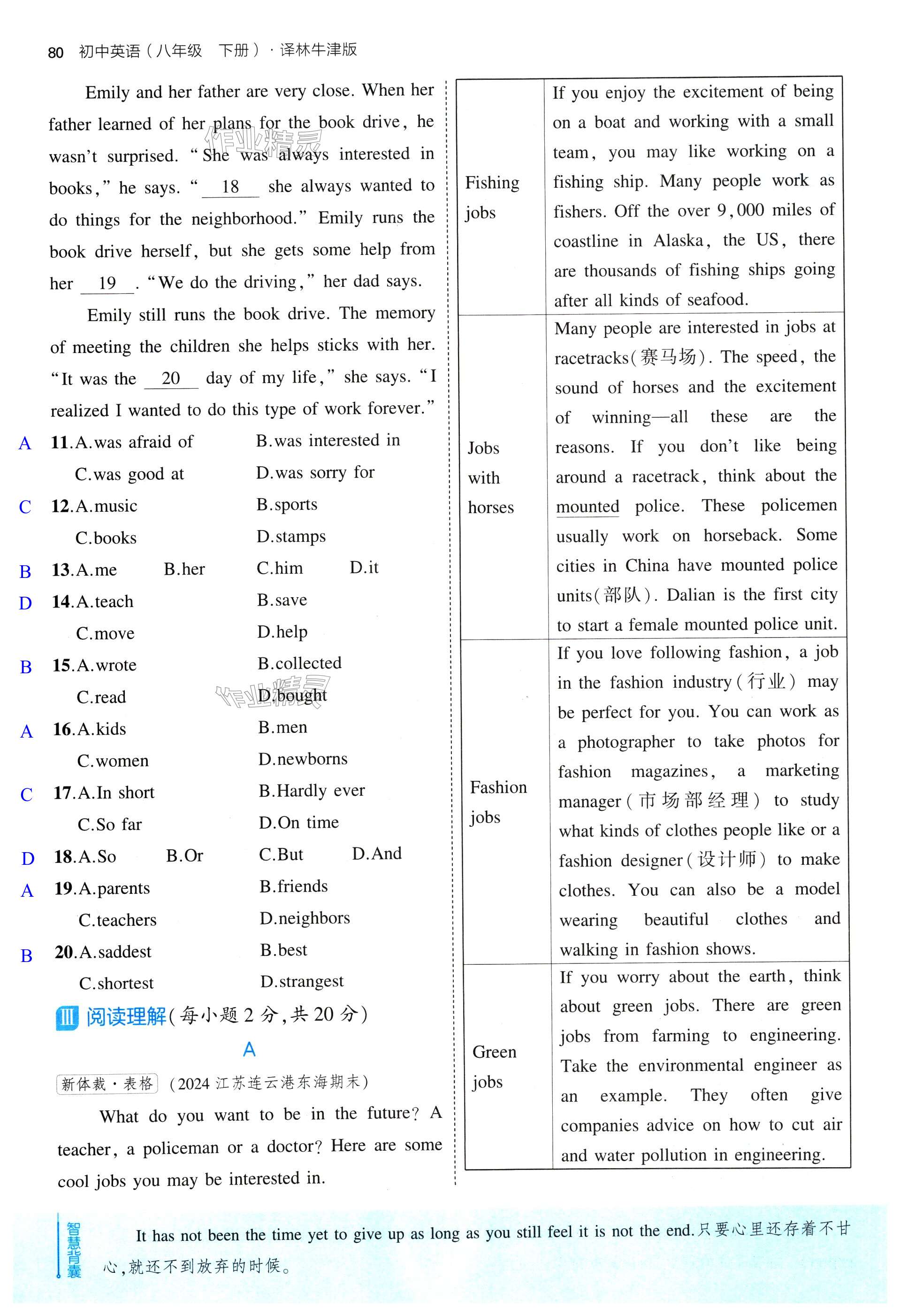 注:目前有些书本章节名称可能整理的还不是很完善,但都是按照顺序排列的,请同学们按照顺序仔细查找。练习册 2025年5年中考3年模拟八年级英语下册译林版 答案主要是用来给同学们做完题方便对答案用的,请勿直接抄袭。