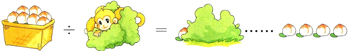 5. 孙悟空要把一筐仙桃平均分给他的猴子猴孙。观察下图,解决问题。