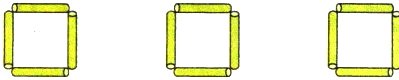 4. 优优用一些小棒摆了3个正方形,剩下的不够再摆一个同样的正方形了。她最多剩下多少根小棒?请你画小棒表示出来。