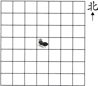 蚂蚁先向西走3格,再向北走1格,然后向东北走2格,最后向东南走2格。