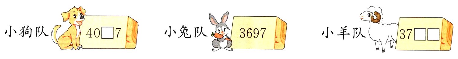 小狗队 40□7 小兔队 3697 小羊队 37□□