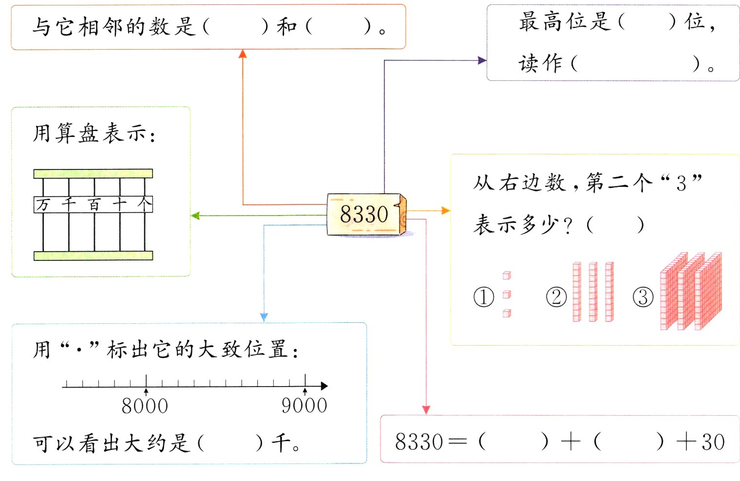 1 妈妈是“健身达人”,本周她一共跑了8330米。一起来认识这个数吧!