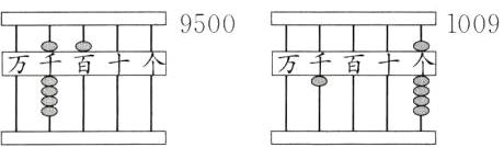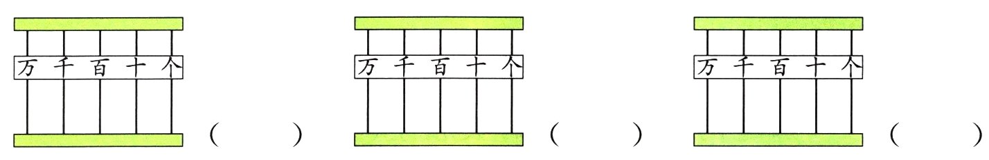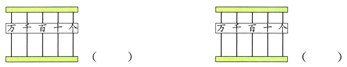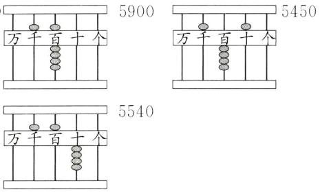 4 用6个珠在算盘上拨出四位数。画一画,填一填。