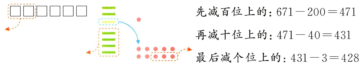7 用“□”表示100,“—”表示10,“•”表示1。671 - 243的计算过程可以用下面的图表示。