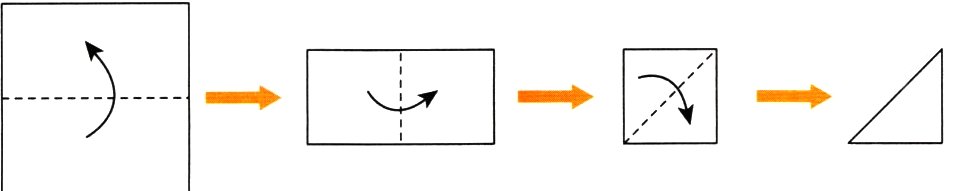 5. 按下图的步骤把一张正方形纸连续对折三次,展开后,这张正方形纸上一共有( )个直角。