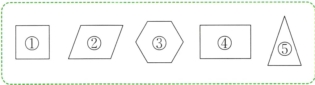 五、下面的图形中分别有几个锐角、几个直角和几个钝角?