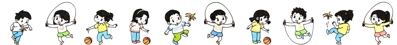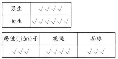 (2)踢毽子的有( )人,跳绳的有( )人,拍球的有( )人,一共有( )人。