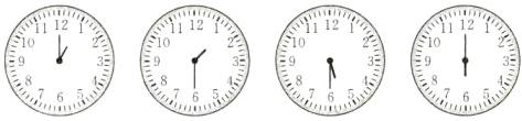 4. 先根据给出的时间在钟面上画出时针和分针,再填一填经过时间。